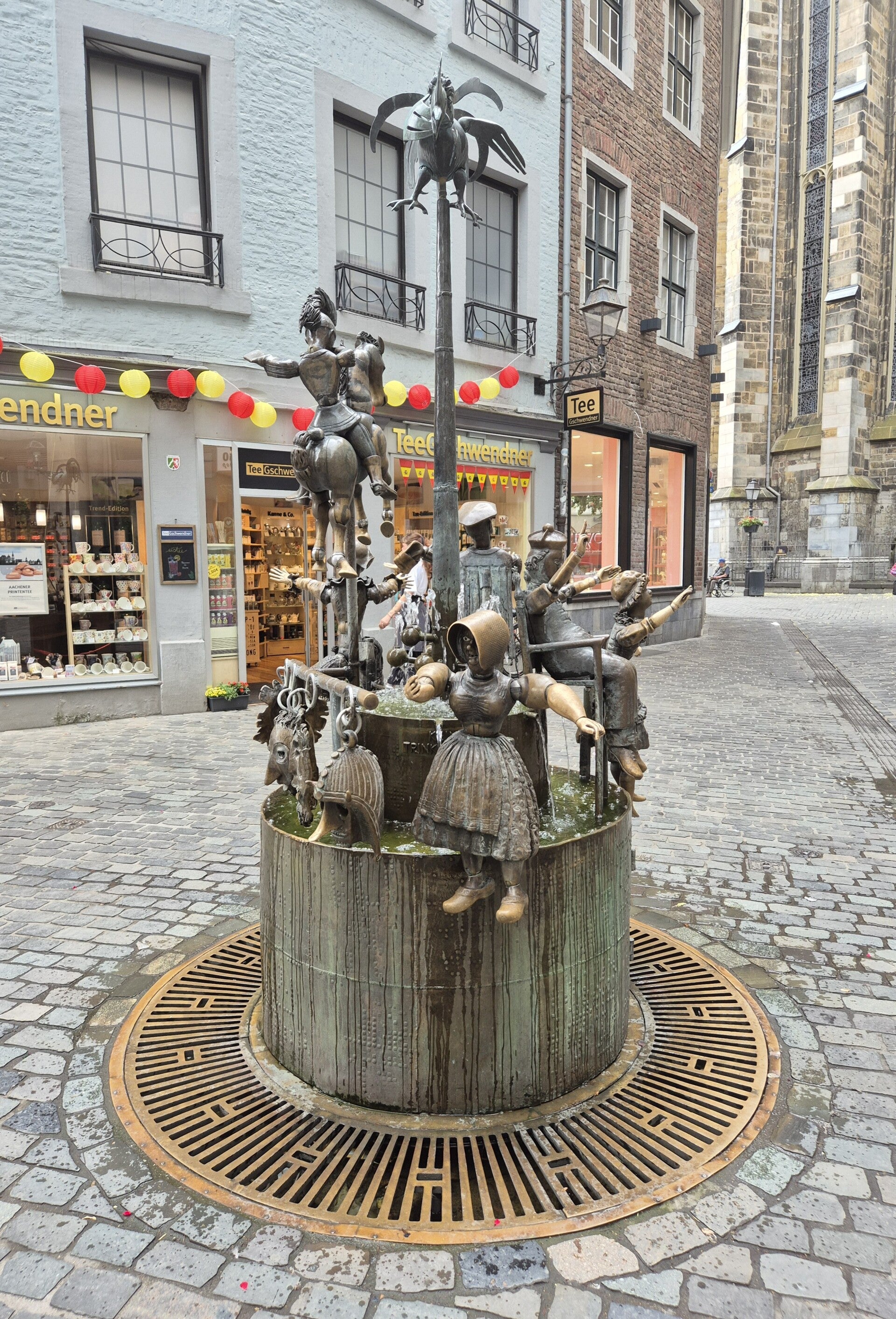 Aachen ist die Stadt des Wassers. Hier sprudelt das Wasser über und unter der Erde. Die vielen Brunnen, frühere Laufbrunnen, sind eine Zierde für die Stadt. Jeder Brunnen erzählt seine eigene Geschichte. Bei dieser Führung erfahren Sie etwas über das "Fischpüddelchen" auf dem Fischmarkt, über das heimliche Wappentier der Aachener und wer am Gertrudistag die Stadt überfallen hat und vieles mehr.